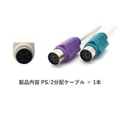 PS/2 6ピン オス ミニDIN ➡ PS/2キーボード 6ピン メス ミニDIN & PS/2マウス 6ピン メス ミニDIN<br>ノートパソコンのようにPS/2ポートを1基のみ備える機器でPS/2のキーボードとマウスを同時に使用できる分配ケーブルです(USB変換アダプタと併用してUSB機器キーボード・マウスなどを接続してもご利用いただけません)<br>●製品の長さ 約 30cm<br>●製品内容 PS/2分配ケーブル × 1本<br>●保証期間 お届け日より1ヶ月