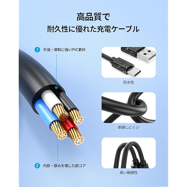 [安全性保証] 高品質な素材を採用し、厳格なテストを実施。安定した充電を可能にし、信頼性も抜群です。高温・摩耗に強く、過充電・過電流・過熱などを防ぐ保護機能付きで、安心・安全な充電体験を提供します