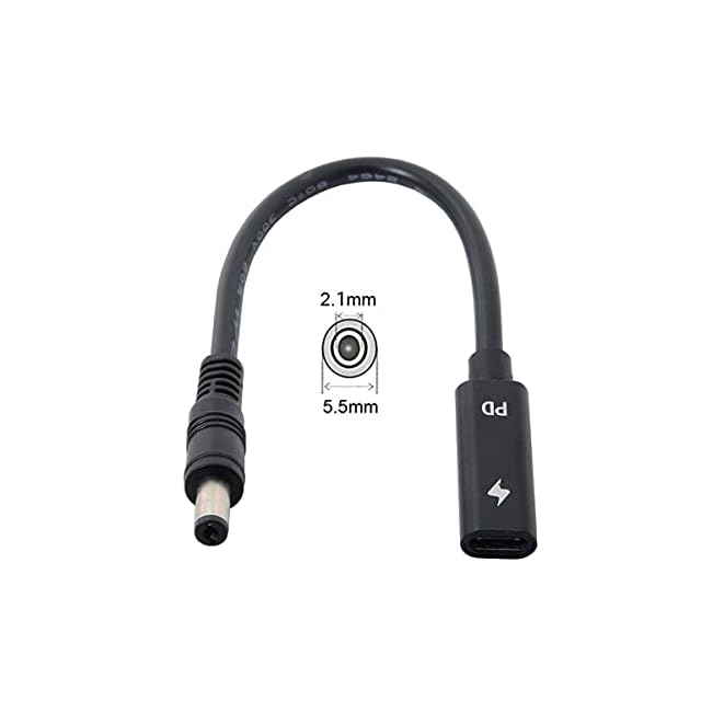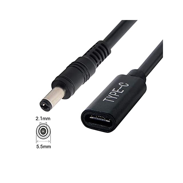 0.2m Type C USB-C メス入力 - DC 5.5 x 2.1mm 電源充電ケーブル。