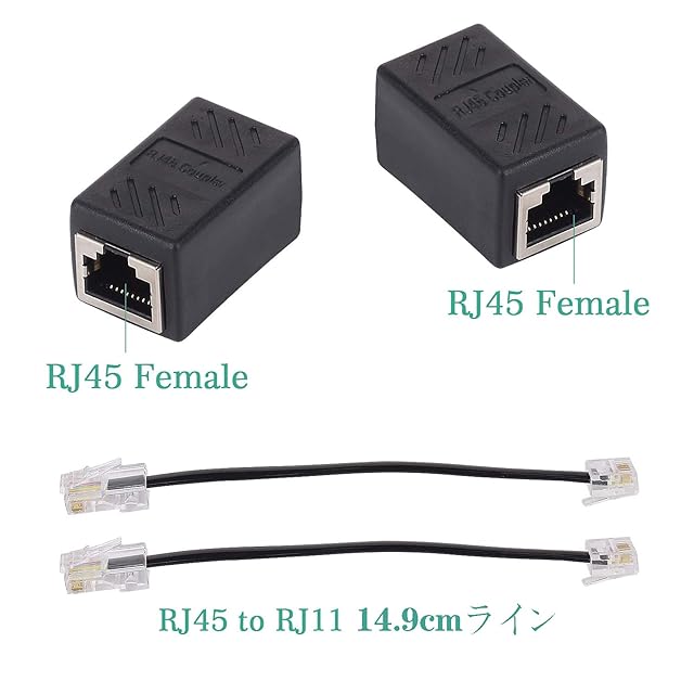 RJ45 LANケーブル用中継コネクタ RJ45ケーブル用中継インターネット RJ45延長アダプタ RJ45イーサネットスプリッター RJ45ネットワークスプリッターケーブル イーサネットケーブル RJ45メス-RJ11オスアダプター 2パック ブラック | AVENIR
