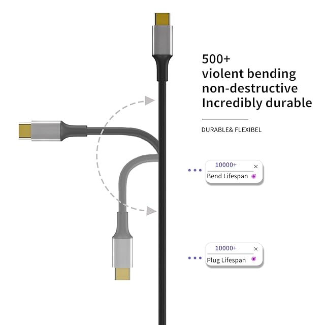 素材 : 保護性能、強度、柔軟性に優れた丈夫な編組ナイロン繊維布、耐久性を改善し、ほつれを減らすための保護層追加済み、ケーブル95度で5000回曲げる試験検証済み