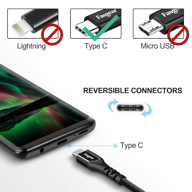 Fasgear USB Cケーブル、2パック 30cm USB Type C 2.0ケーブル 急速充電と高速データ転送 Moto G6 G7 Galaxy S8 S8+ S9 Oneplus 7 7pro Sony Xperia L1 XA2 Huawei P20 Lite対応 (ブラック) | AVENIR