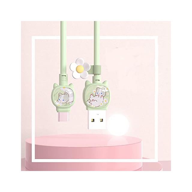 AEOLK 花の海 猫データケーブル Type C 2.1A充?100cm Samsung Galaxy S21 S20 FE S10 S9 S8 A72 A52 Note20 Ultra 5G、LG、HTCと互換性があります (green)