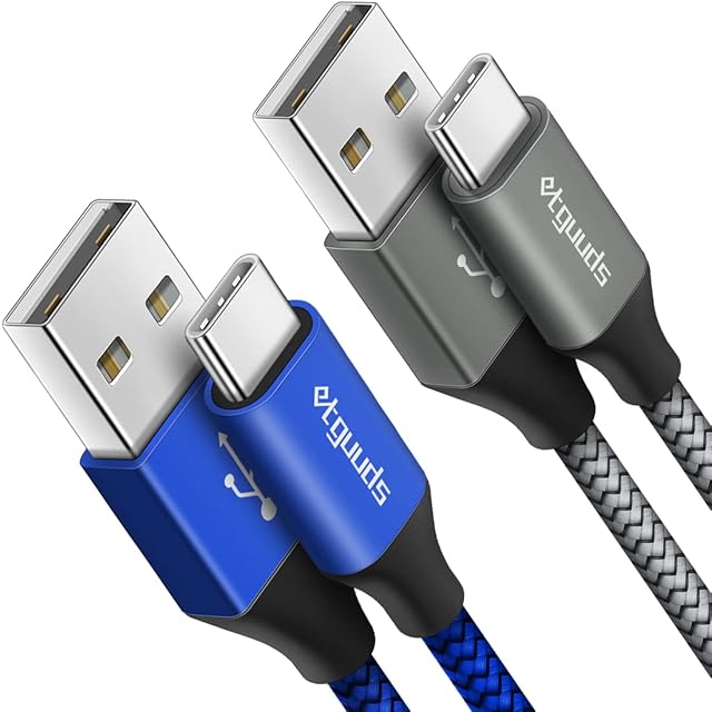 etguuds USB Type C ケーブル【2M/2本セット】USB C ケーブル QC3.0対応 急速充電 コード タイプ C ケーブル 高耐久ナイロン Xperia XZ1 XZ2 XZ3, Galaxy Note 10 9 8 S20 S10 S9 A20 A21 A22 A30 M30 M21, Switch, Motoその他Android USB-C機器対応 | AVENIR