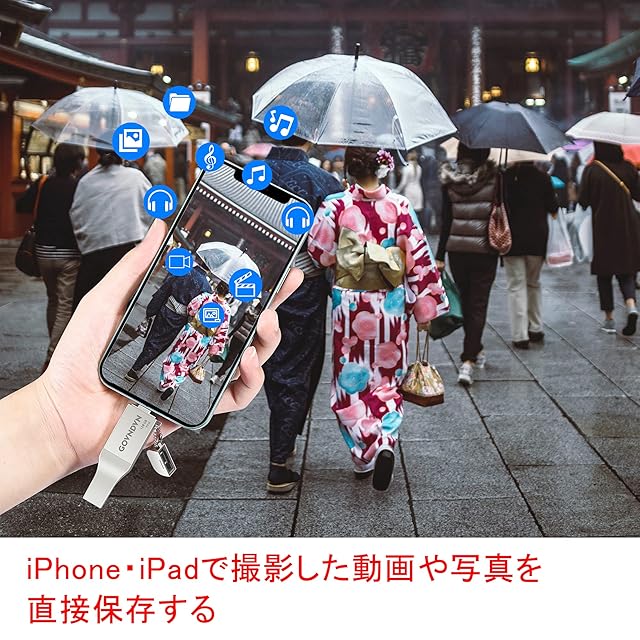 ✅【パスワードとデータの暗号化機能、高速性と安全性】iPhone / iPad用のGoMemoryアプリのインストールでは、フラッシュドライブのパスワードを設定し、必要なデータを暗号化できます。また、USBメモリをPCに接続すると、暗号化されたデータは表示されません。iPhoneで復号化すると表示されます。iPhone用 USBメモリー ファイルロックで紛失時もデータの情報漏れの心配はありません。USB3.0ポートの高速転送-読み取り80MB /秒、書き込み40MB /秒。 iOS Apple MFi Lightingポート-15MB /秒の読み取り、10MB /秒の書き込み。 外付けiPhoneフォトスティックは、大きなサイズのファイルを転送するための高速性と安定性を備えています。