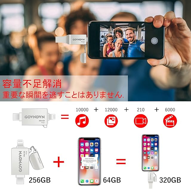 ✅【iPhoneとiPad用に設計された自動バックアップ】外付けドライブを接続し、「GoMemory」アプリ(iPhone と iPadのみ必要)をダウンロードして。大量の写真やビデオは、ワンクリックバックアップ機能によってiPhoneからこのUSBフラッシュドライブに簡単に転送されます。ワンクリックで連絡先をバックアップおよび復元できます。256GBのLighting USBメモリを搭載しているので、iPhoneの容量を気にすることなく、海外や旅行で好きなだけ写真を撮ることができます。 保存した写真や動画はどこでも簡単に閲覧・閲覧できます。 パソコンがなくてもiPhone / iPadのデータを簡単にバックアップできます。 写真やビデオをコピーして、その場で共有できます。