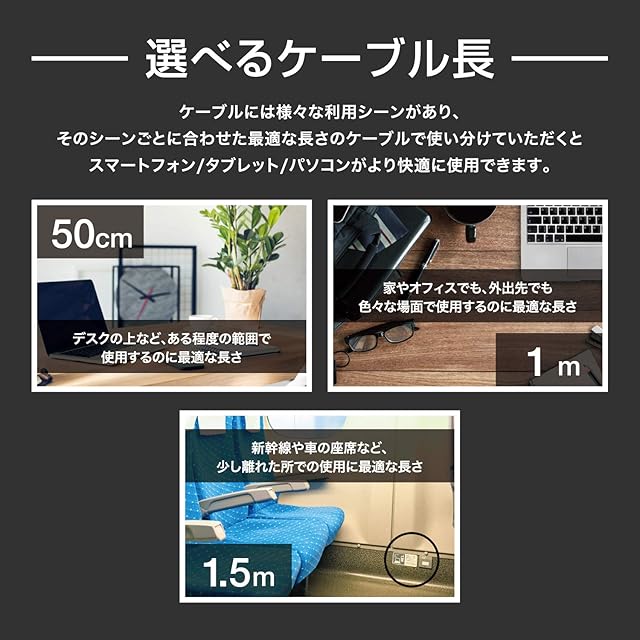 Power Deliveryに対応したUSB-Cポート搭載充電器と合わせて使用することで、スマートフォンを30分で最大50%まで再充電可能な、C to Cケーブルです。