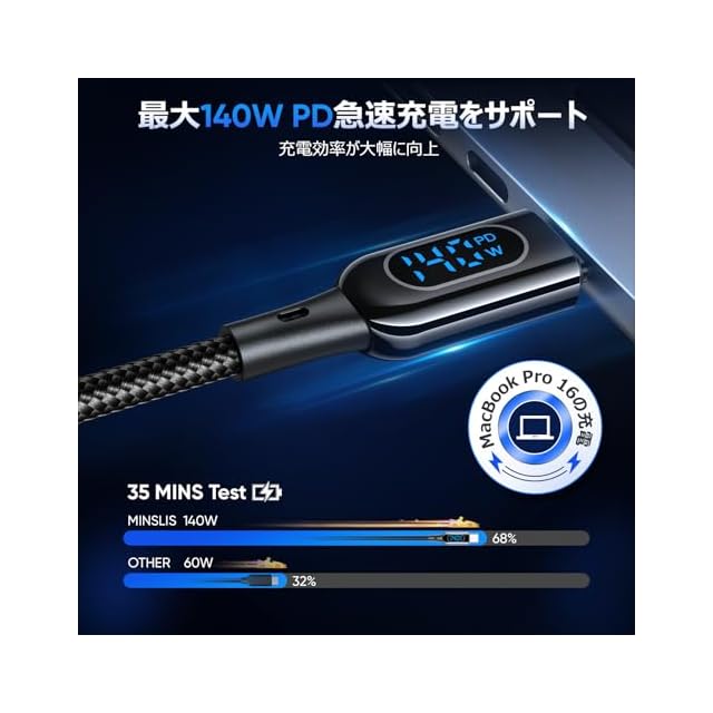 【パッケージ内容】●MINSLIS DC03 140W USB Type C ケーブル(1m)x 1 【保証期間】※お買い上げの商品は購入日より[永久]の保証期間をご提供致します。初期不良などのトラブルの場合、商品到着から返却・交換を承ります。