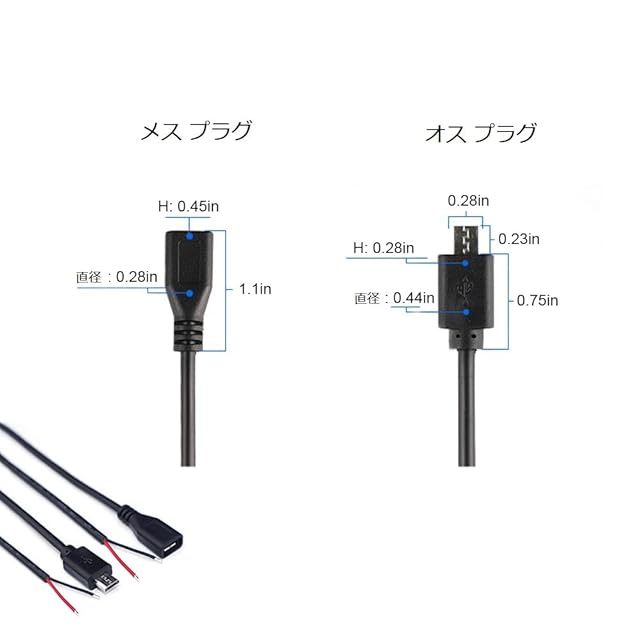 パッケージには、0.3M/1フィートのマイクロUSB 2ワイヤーピグテールケーブル4本が含まれます。オスプラグ2個とメスプラグ2個が含まれ、より多くの用途に対応します。