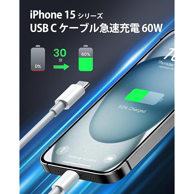 【iPhone 16/15 シリーズために特別に設計された】-- USB PD技術に対応し、最大60Wまで安全かつ安定して出力できます。60W 45W 30W 20W 18Wの電力供給PD急速充電をサポートします。 PD充電を実現するために、デバイスとアダプタはPD機能をサポートする必要があります。