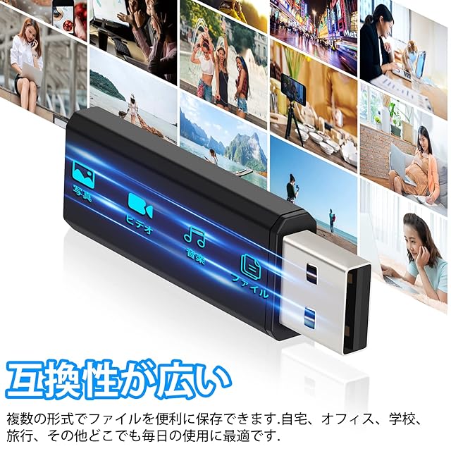 【USBインターフェイス】:高速USB 2.0 規格に準拠し、USB 1.0 と下位互換性があります。読取り速度最大120MB/秒、書き込み速度:20~60MB/秒、作業効率の向上し、時間を節約します。