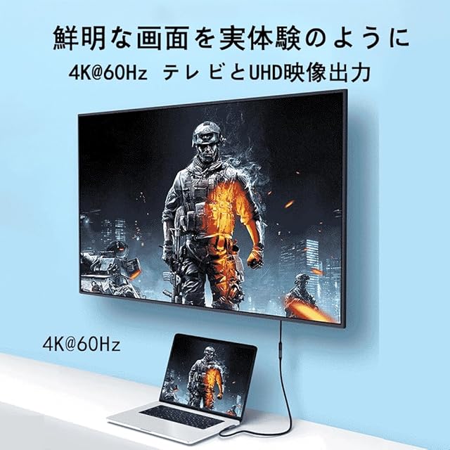 【4K@60Hの高解像度ビデオ出力に対応】USB type C ポート出力に対応するディスプレイに接続し、最大3840x2160@60HZ 4Kのビデオ信号転送に対応し、より多くの高解像度画質を楽しむことができます。ご注意:入力デバイスと出力のType Cポートがビデオ入出力機能に対応していることを確認してください。