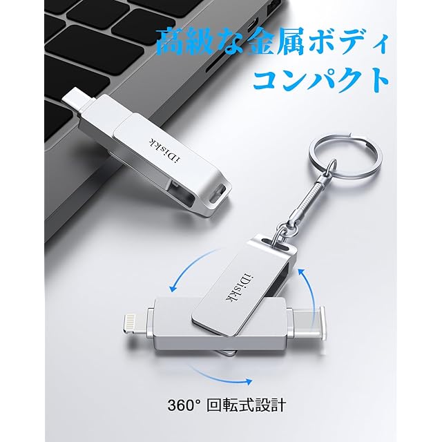 Apple Mfi認証済 Lightning+Type-C iPhone 16/15 対応 iDiskk 128GB iPhone USBメモリ フラッシュドライブ 外付けメモリー 外部ハードデイスク スマホ用 スマートフォンストレージ拡張 携帯電話容量不足解消 プラグ&プレイワンクリック自動バックアップ iPhone/iPadシリーズ/Macbook/Andorid(Type-C)対応 | AVENIR