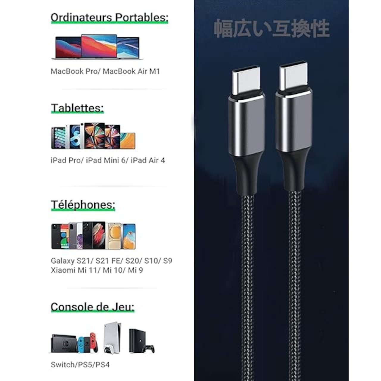 USB Type C ケーブル 100W/5A PD対応 QC 4.0急速充電 高速データ転送 高耐久ナイロン編み Type c to Type c タイプC 充電ケーブル MacBook Pro、iPad Pro/Air、iPad mini 6、Xperia、Galaxy、Pixel等Type C機種対応 (1M) | AVENIR