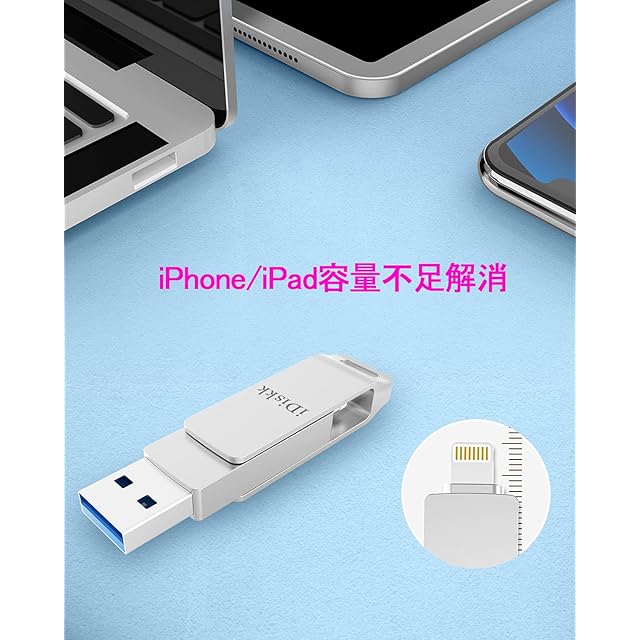 【iOSデバイス専用に開発された容量不足解消小型USBメモリ】パソコン用USBメモリーのように挿すだけで、専用アプリが立ち上がり、誰でも簡単にバックアップができます外付けドライブでiPhone/iPad/iPodのストレージ大容量を128G拡張可能、容量不足の悩みを解消可能です。 iPhoneの空き容量を確保, 動画などの 大容量のデータを持ち運び, デバイス間で簡単に高速転送 , 専用アプリで簡単に管理できます。商品をご使用中に、iPhone、iPad、PCに反応しないなら、写真、ファイル、動画を移行できない時、お気軽に弊店のカスタマーサービスにご連絡ください。こちらで第一時間に最善な処理方法を対応させていただきます。