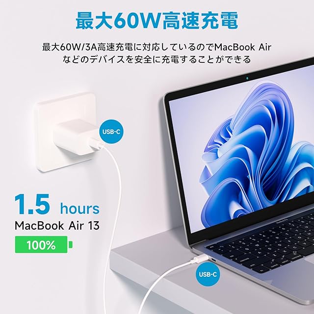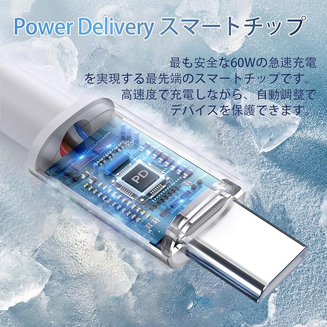 【PD対応&60W高速充電】:USB Power Delivery技術に対応するUSB-C&USB-Cケーブルです。最大60Wの高出力で、USB-Cポートからスマートフォンやタブレット端末、ノートPC等のUSB-C機器にフルスピード充電が可能です。★ご注意:PD急速充電を実現するために、モバイルデバイスとアダプタはPD機能をサポートする必要があります。