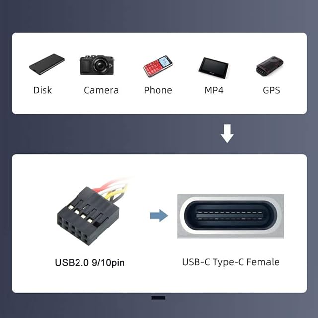 9pinマザーボード内部USB 2.0ポートを外部USBタイプCソケットに変換できます。