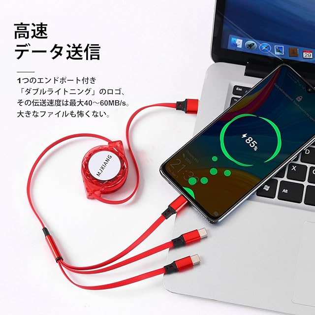 格納式デザイン: ケーブルの両側を伸ばすだけで、長さを20cm/40cm/60cm/80cm/100cmに調整できます。 格納式デザインで使いやすく、収納も簡単 家庭、オフィス、車などに最適。