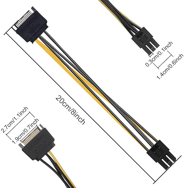 完璧なケーブル長: 8 インチ 20cm コネクタを備えたこの sata 電源ケーブルは、内部ケーブル管理に最適です。