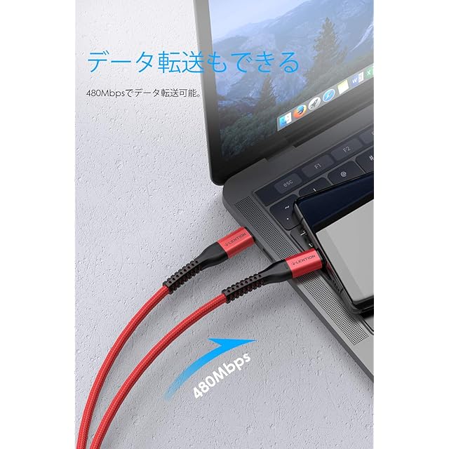 LENTION USB-C to USB-C 充電専用ケーブル 1m 60W対応 USB Power Delivery USB2.0 480Mbps転送速度 タイプc Macbook、iPad Pro、Surface、Switch、Xperia、Galaxyなど対応 (レッド)
