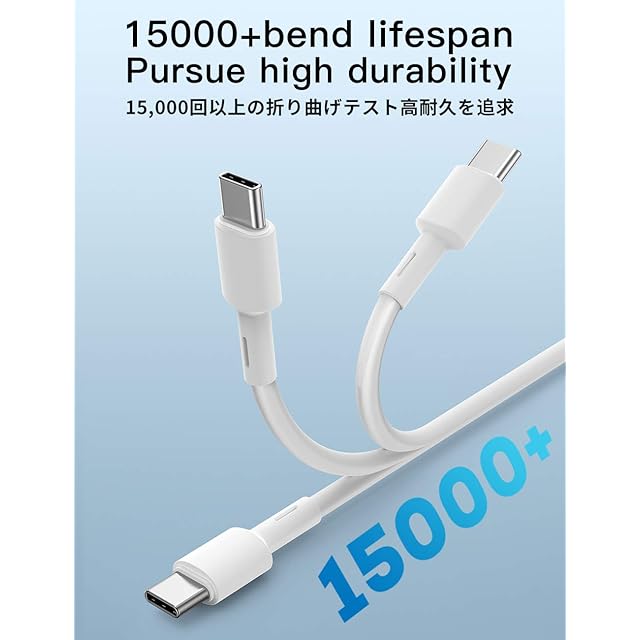 【高耐久なタイプ Cケーブル・断線防止】 10000回以上の屈曲、張力、スイングなどの厳しいテストを通過したタイプ Cケーブルです。外部・内部共に切れにくい構造に仕上げました。高耐久性を実現しました。
