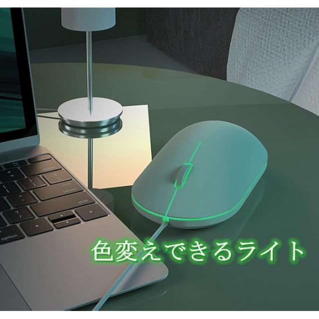 有線マウス 静音 USB ライト付き 薄型 3ボタン 光学式 軽量 持ち運び シンプル フィット感 PC コンピューター ノードパソコン用 滑り止めホイール オシャレ Windows XP/7/8/10/11 Chrome Mac OS対応(緑) | AVENIR