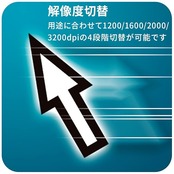 コネクタ:USB Aタイプ 分解能:1200/1600/2000/3200dpi 切替式 ボタン:5ボタン 外形寸法:(約)幅65×高さ38×奥行110mm マウス質量:本体約83g ケーブル長:約1.5m 動作温度/湿度:5~40℃/~85%RH(ただし結露ない場合)