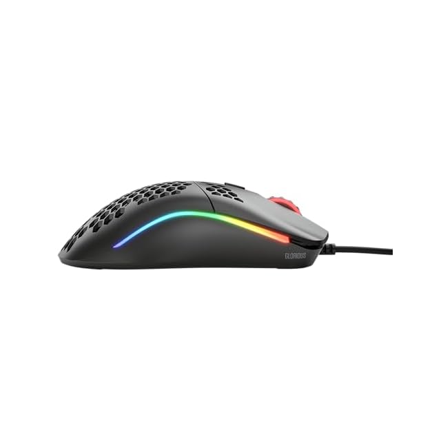 サイズとスタイル: ゲーミング用両手対応軽量マウス。スピード、コントロール、快適性を追求し、最適な重量と高い耐久性を実現。Model O- (Minus) は中~小さな手に最適。