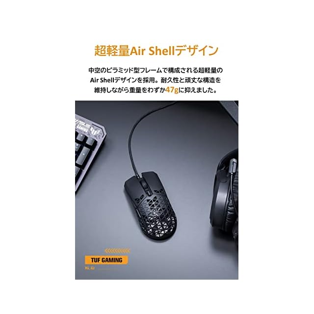 ASUS ゲーミングマウス TUF Gaming M4 Air 超軽量 47グラム 16,000dpi 6つのプログラム可能なボタン IPX6耐水性 抗菌 有線 国内正規品 black | AVENIR