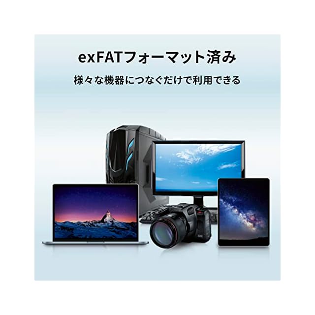 【シネマカメラなど、様々な機器で利用できる】Blackmagic Design社 Pocket Cinema Cameraシリーズでの検証をアイ・オー・データにて実施しました。SSDに直接録画しながらの撮影について、SSPA-USC/Eシリーズであれば快適にご使用いただけます。exFATフォーマット済みのためMac、Windows、iPad、シネマカメラなど様々な機器につなぐだけでご利用いただけます。