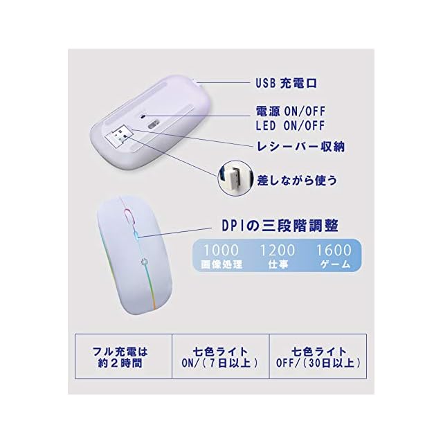 さくら スリム ワイヤレスマウス LEDライト 充電式 ペアリング必要ない 面倒な設定いらない USBポートに挿したら すぐ使える 無線マウス 超軽い 軽量 3色 高感度 利き手フリー設計 静音 自動スリープモード Cyberplugs | AVENIR