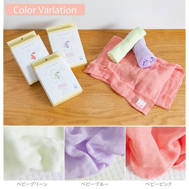 ハーモニーガーゼの「沐浴ガーゼタオル」は、おぼろタオル独自の3重袋織ガーゼ構造により、吸水性、通気性に優れ新生児の沐浴タオルとしてはもちろん、お風呂上がりに身体を拭いたりよだれや吐き戻しをサッと拭いたり、あらゆるシーンで大活躍