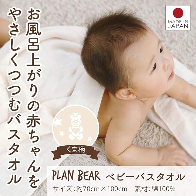 【 コットン100% 6重ガーゼ の ベビーバスタオル 】プランベア ベビーバスタオル サイズ:約70cm×100cm 素材:綿100% 【 高品質で安心の 日本製 】 Made in Japan ベージュ クリーム PLAN BEAR
