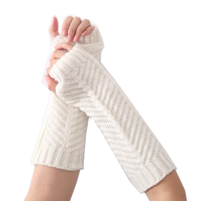 アームウォーマー レデイース ニット手袋 30cm 手首 ウォーマー ハンドウォーマー 半指手袋 指掛けタイプ 手荒れ アームカバー 冬 魚A白