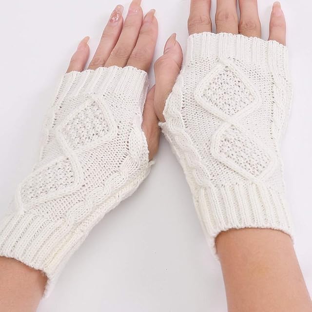 アームウォーマー レデイース ニット手袋 手首 ウォーマー ハンドウォーマー 冷え対策 半指手袋 指掛けタイプ 手荒れ A白