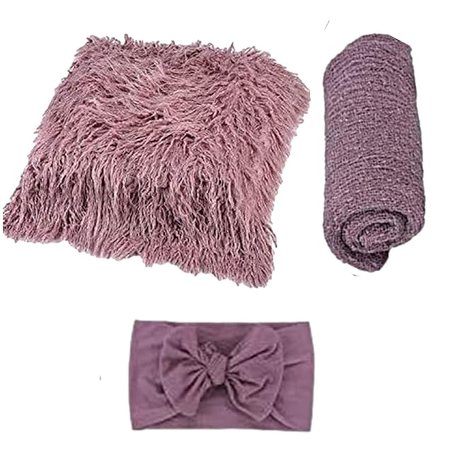 撮影用ベビーブランケット、赤ちゃん用写真マット +ヘアバンド+タオルの3点セット。グレー、パープル、ピンク、ホワイト、ネイビー、5色からお選びできます。