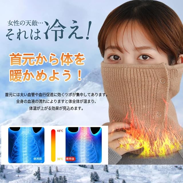 【柔らかい・ネックを暖かく包み込む】肌に優しいニット素材を使用しておりますので、ふんわりと首周りを包み込む軽い被り心地で、暖かくて気持ち良く着けます。外の冷風をを遮断しますので、寒い冬に首元を冷たい風から守ります。顔部・首部だけでなく、耳までもすっぽりカバーできます。軽くて暖かいネックウォーマーで寒い冬を乗り切りましょう!