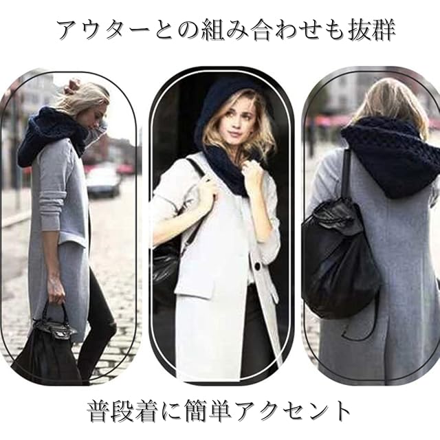 バイクや自転車、オープンカーなどの乗り物にもお勧め。ヘルメット(フルフェイスを含む)の時は首周りを温めるようにマフラースタイルに♪通勤・通学時にマフラーやストール、スカーフが解けて風になびいたり車輪に巻き込まれそうになった方。バラクラバ(つけフード)ではそういった心配はございません♪フードがかぶれない時はネックウォーマーとして。学校や社内(オフィス)やデパート(百貨店)電車内などでは脱いでカバンの中に収納。