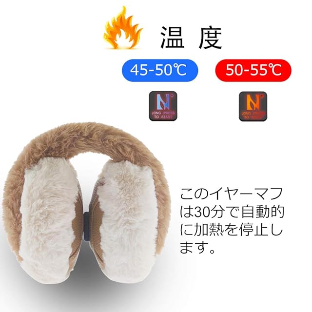 【優れた加熱機能】Aroma seasonの電熱式イヤーマフは2段階の温度調整システムを提供します。55℃に加熱することできます。何も操作しないと、イヤーマフは30分で自動的に加熱を停止します。このイヤーマフは来たる冬になくてはならないものです