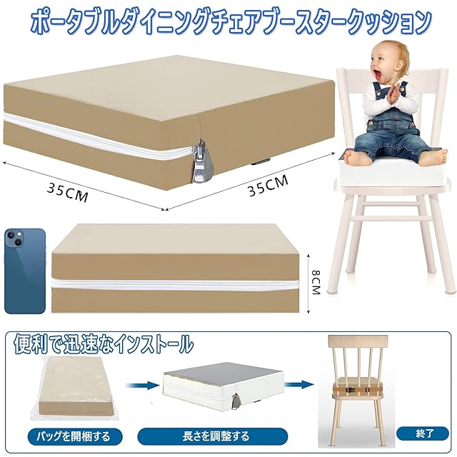 大判高さ調節お子様用クッション 子供お食事クッション ベビーチェア用 チェアクッション 洗える取り外し可能 こども座布団 ダイニング チェアクッションキッズ用 厚い チェア シート パッド マット ハイチェア ローチェア 兼用 (PUベージュ) | AVENIR