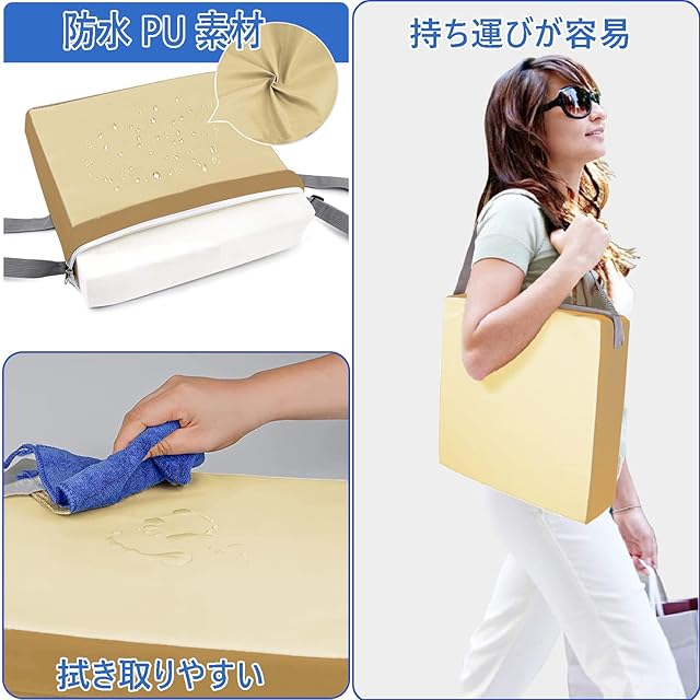 【頑丈な素材】座布団のカバーは合成皮革の素材を採用。通気性が大変良く、お肌にもやさしい作りになっております。汚れや臭いに強く、湿った布で簡単に拭くことができます。高密度スポンジの中材ので、ソフトで最大8cmアップ、お尻への圧力を減少して快適にお使えます 。丈夫で耐久性があり、リバウンドは素早。大人でも座ったときにへこみを残しません。
