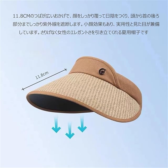 【優れた素材】サンバイザー本体は麦わらで出来ている、軽量で風通しも良く吸水速乾性がある高品質素材を使用するので、通気性がよく、汗をかきやすい盛夏でも細菌の増殖を抑え臭いの発生を抑制します。おでこに当たる部分には汗止め用のあて布があり、汗が目に入らないので、コンタクトや眼鏡や化粧などをつけていても心配しません。