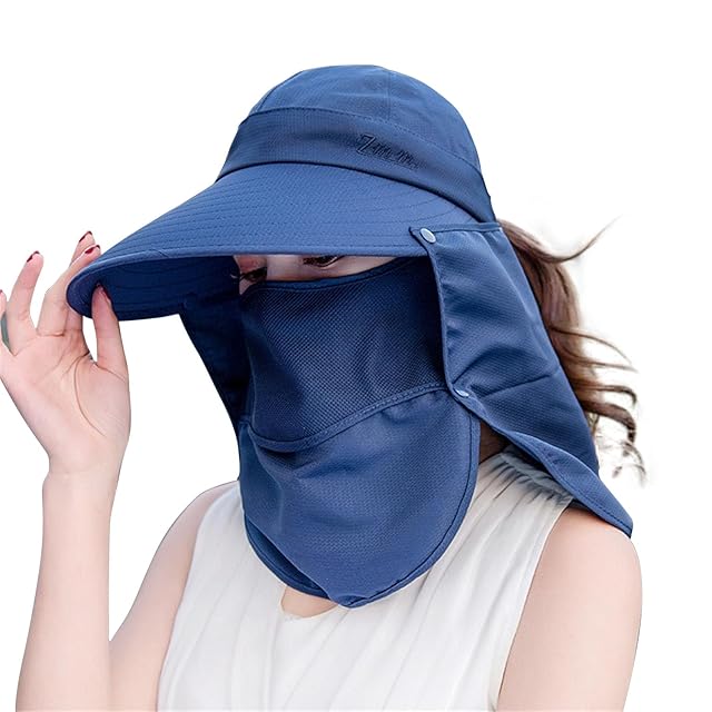 [JOMA E-Shop] ガーデニング 帽子 農園帽 サンバイザー UVカット つば広 折りたたみ 紫外線対策 日よけ 首ガード おしゃれ帽子 フェイスカバー 農作業 園芸 アウトドア 釣り 4WAY キャップ 春 夏 秋 (ネイビー) | AVENIR