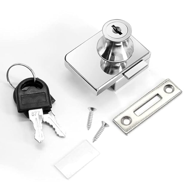 ショーケースやキャビネットのガラス扉を施錠するガラスドアロックです。片開き扉専用です。両開き(観音開き)扉には使えません。
