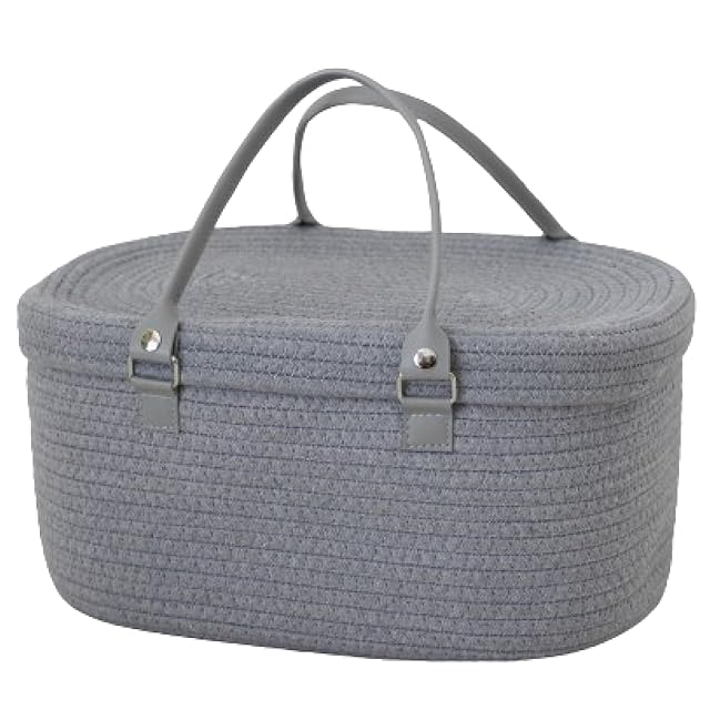 ponpy おむつストッカー ふた オムツストッカー おむつかご おむつ収納 オムツ収納 おしゃれ 収納 小物入れ 出産祝い プレゼント ロープバスケット ロープストレージ (かご+ふた(グレー))
