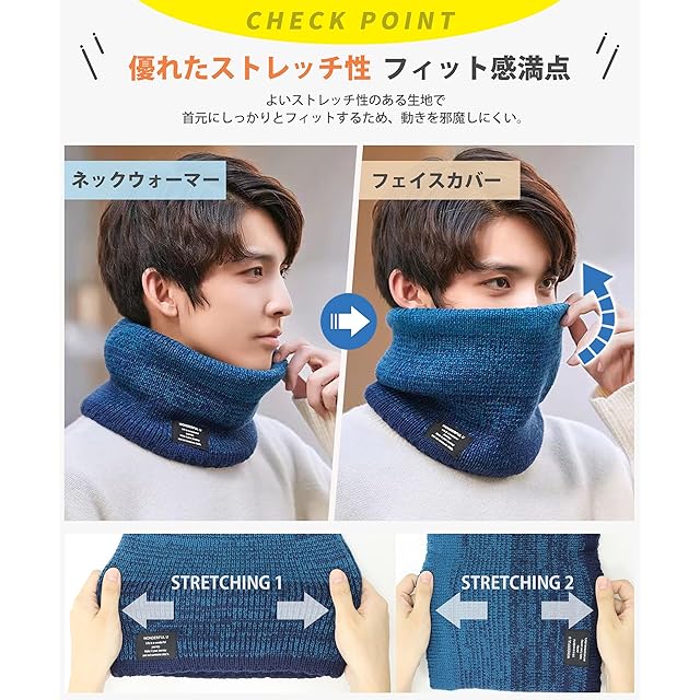 【良いストレッチ性・着脱しやすい】このネックウォーマーはストレッチ性やフィット感の高い素材を使用しています。自由に引っ張って変形せず、ネックにぴったりフィットし、締め付け感なしのネックウォーマー。簡単に装着でき、脱いだときにも髪型が乱れにくいネックウォーマー。フィット感があり動きを邪魔しないネックウォーマーのため、寒い冬のスポーツやアウトドアにおすすめです。