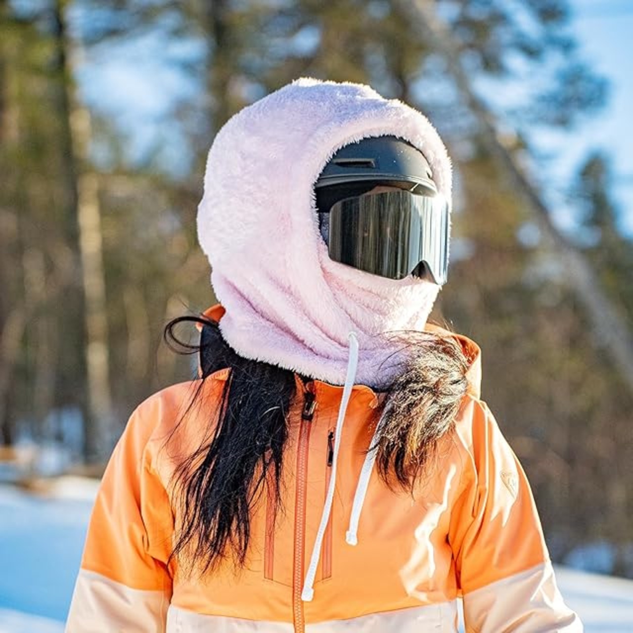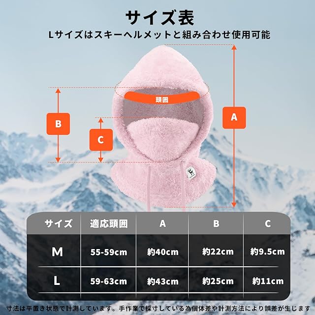 [Qunature] ネックウォーマー レディース フードウォーマー 目出し帽 防寒 保温 フワフワ 裏起毛 轻量 柔らかい 息苦しくない スノーボード スキー 登山 アウトドア スポーツ 冬用(ピンク、M) | AVENIR