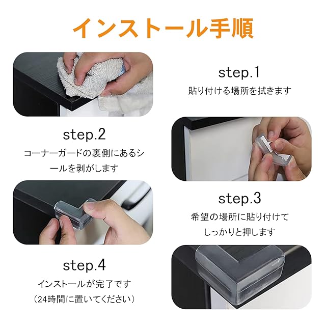 【高品質なシリコン素材&3Mテープ採用】厚い材料で作られたPVC環境に優しい材料、安全で柔軟な、柔らかくてしっかりしています。それぞれの鋭い角は、透明テーブル角カバーで覆われて、保護に良い役割を果たすことができます。弾力性と耐摩耗性も備えていますので、丈夫、実用的で耐久性があります。 &強力な3M粘着テープを採用され、インストールが便利で、簡単に外れません。3M接着剤は品質が良く、一般的に引っ張る時家具の表面を破壊しません。