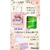ボックスサイズ18cm×16.5cm 白菜のおくるみと帽子付 メッセージカード2枚入り。