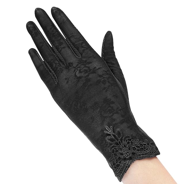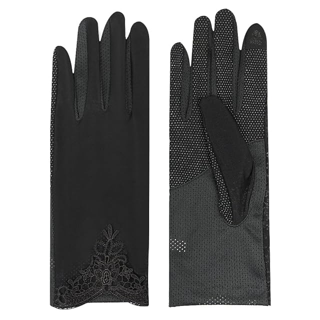 [FakeFace] レディースグローブ 手袋 夏 uvカット 日焼け対策 メッシュ レース 薄型 手袋 タッチパネル対応 スマホ手袋 おしゃれ エレガント 花柄 滑止め付 フルフィンガー 女性 運転 自転車 アウトドアグローブ ブラック | AVENIR